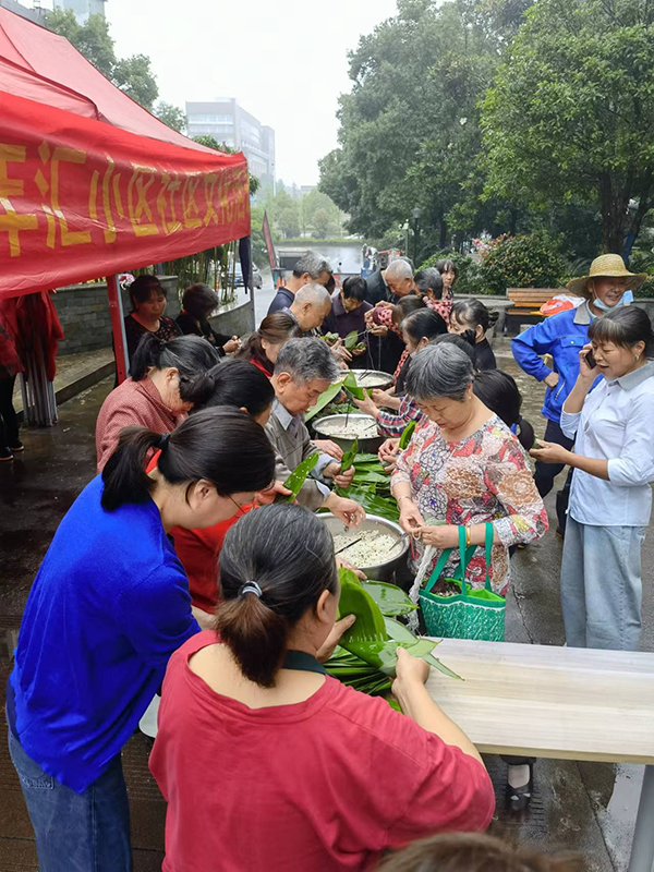 上午九點活動準時開始,現場人頭攢動,小區業主家人們熱情高漲,積極參加,領粽葉、領糯米、領繩子,會包的